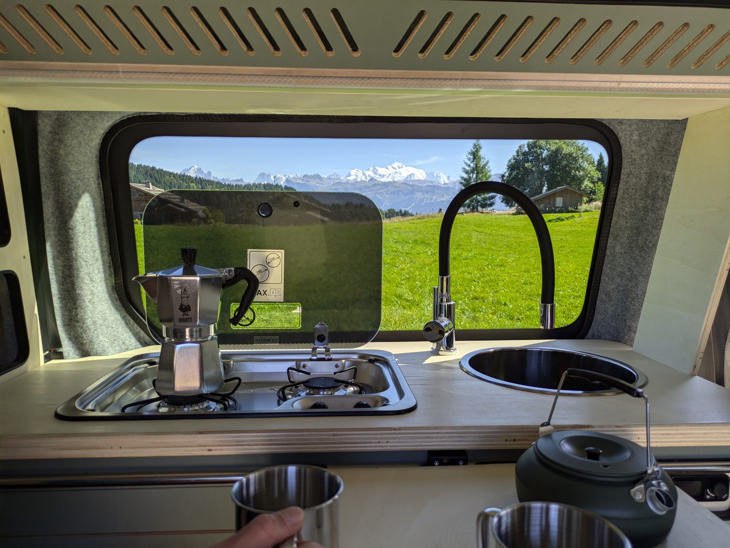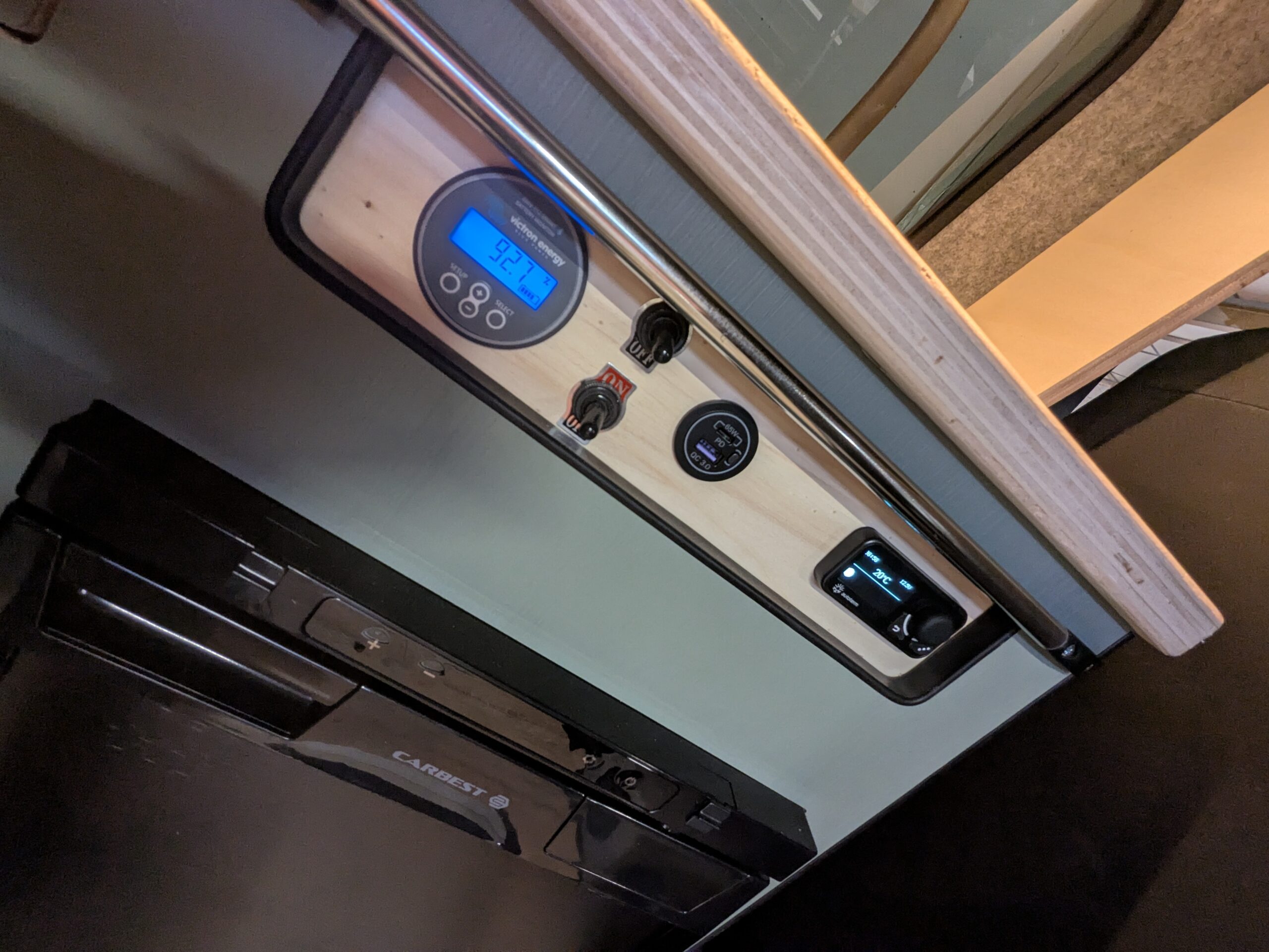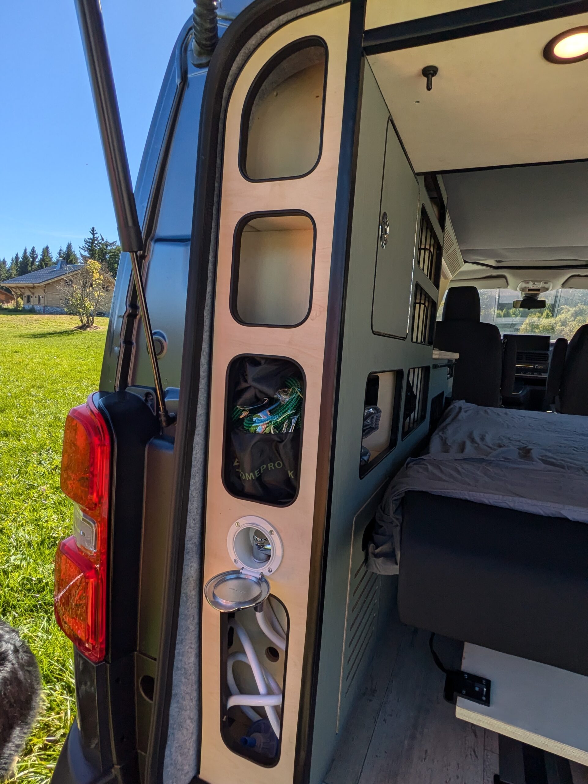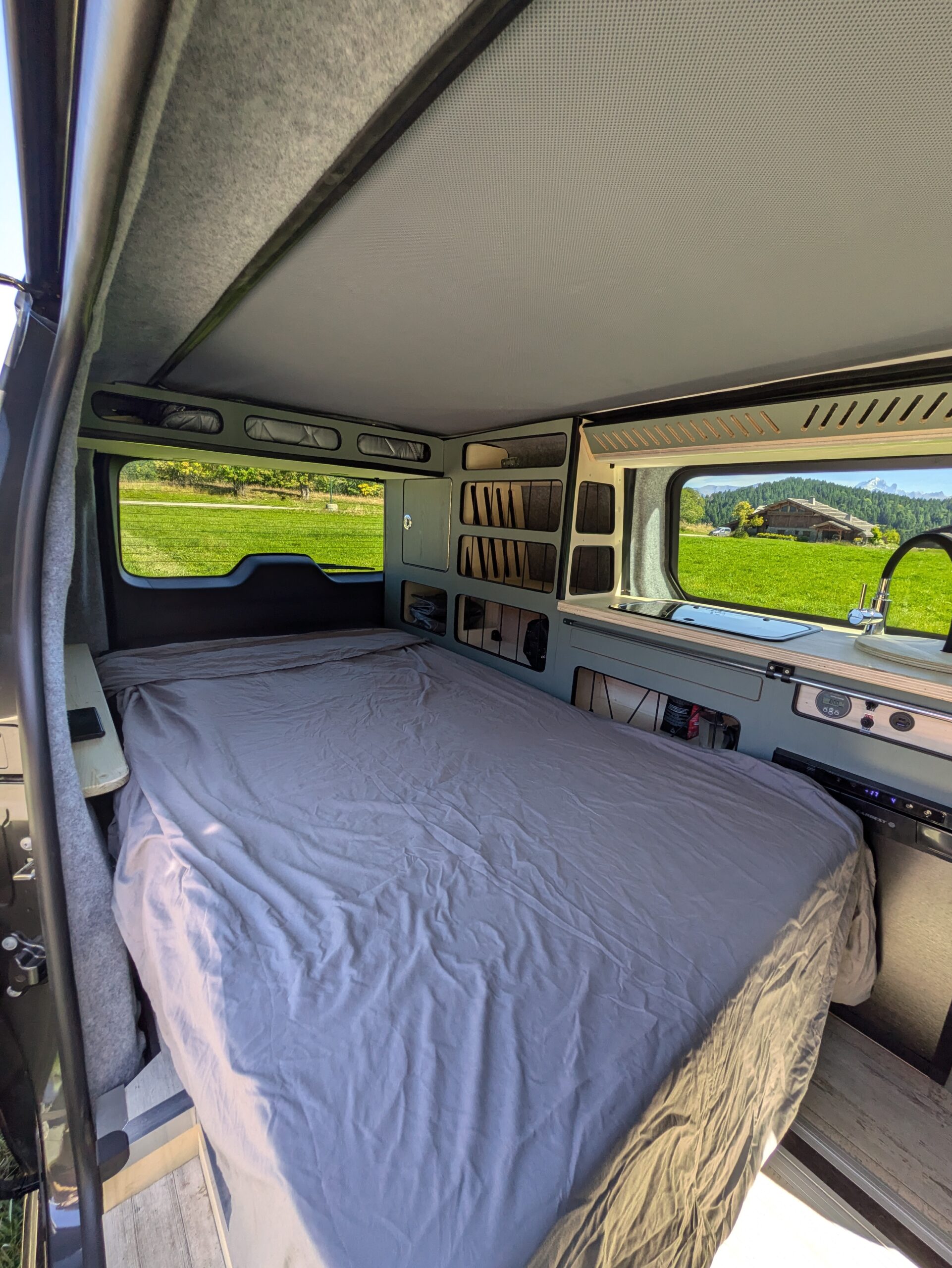 - Système électrique connecté, de qualité (batterie Lithium 100Ah, booster chargeur lorsque mon moteur tourne, chargeur solaire, chargeur secteur au cas où, multiples prises USB)